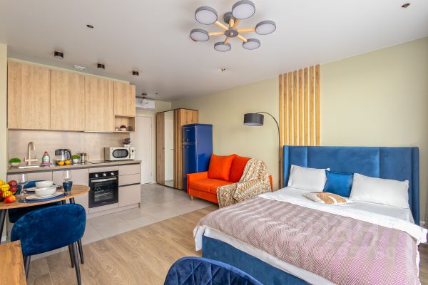 Чтобы пообщаться с нами в чате ---> нажимайте на голубой значок Сообщения, все вопросы можно задать до внесения предоплаты! Для бронирования нажимайте кнопку "Проверить даты". Предоплата на сайте всего 15%. Стильные апартаменты с дизайнерским ремонтом у метро Стрешнево . Совершенно новые! 3 минуты пешком до метро. 6 спальных мест: 2 кровати с матрасами Аскона и двуспальный диван. КРУГЛОСУТОЧНОЕ БЕСКОНТАКТНОЕ ЗАСЕЛЕНИЕ. Отчетные документы. Можно с животными. ВАМ НЕПРЕМЕННО ПОНРАВИТСЯ В НАШИХ АПАРТАМЕНТАХ! И ВОТ ПОЧЕМУ: - Цифровое телевидение - Большие кровати с матрасами Аскона и двуспальный диван в зоне кухни-гостиной. Новое премиальное постельное бельё. - На кухне: холодильник, варочная панель, вытяжка, посудомоечная машина, СВЧ-печь, чайник. Набор посуды и столовых принадлежностей на 6 персон. Чай и кофе - В ванной комнате: душевая кабина, махровые полотенца, фен, шампунь, мыло, гель для душа. Стиральная машина, сушилка для белья. Утюг и гладильная доска - Идеальная чистота: генеральная уборка и дезинфекция проводится после каждого выезда. При долгосрочном бронировании бесплатная уборка каждый 7 день - Возможно размещение с питомцами по предварительной договоренности - Отчетные документы установленного образца. Возможна оплата на р/с организации. Оформление договора по запросу НАВИГАЦИЯ: Ст.метро Срешнево - 3 минуты пешком НАШИ ПРАВИЛА: - Единоразовая доплата за уборку - 1000 рублей. - Время заселения - с 15.00, время выезда - 12.00. Заселение происходит бесконтактно и круглосуточно. - Минимальный возраст гостей - 20 лет. - Курение и проведение вечеринок в квартире запрещены. - Для заезда необходимо предоставить фото паспорта, а также ознакомиться и подписать электронный договор. - Страховой депозит за сохранность имущества вносится при бронировании и возвращается после уборки в день выезда. - Заселение с домашними животными происходит по предварительному согласованию за дополнительную плату. Бронируйте! До встречи в Москве! Квартиры посуточно в Москве - Апартаменты "Алис"