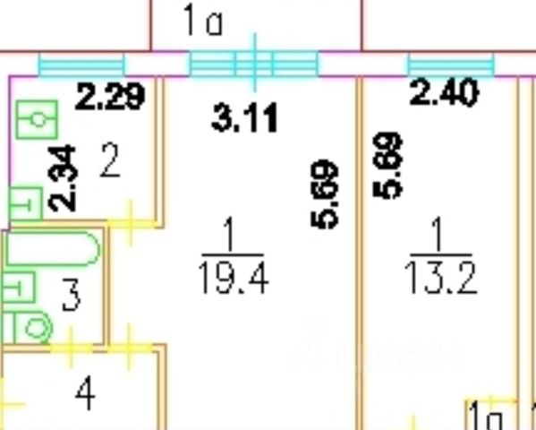 ***Точные размеры: комната 19,1 м2, кухня 9,7 м2. Высота потолков 2,65 м. Просторная лоджия 5 м2