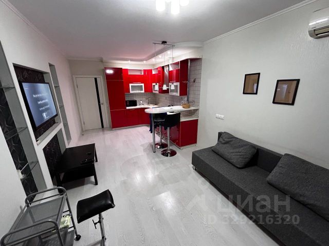 Сдается уютная студия на 11 этаже монолитно-кирпичного дома. В квартире выполнен качественный ремонт, что создает атмосферу комфорта и уюта. Просторная лоджия с видом на город станет отличным местом для отдыха. Внутри вас ждет вся необходимая мебель: шкафы, диван и кровать. Кухня оборудована современной техникой, включая холодильник и плиту. В гостиной установлен телевизор с кабельным/цифровым ТВ. Санузел совмещенный, оформлен в светлых тонах. В квартире также есть стиральная машина. Дом оснащен двумя грузовыми лифтами и открытой парковкой во дворе. Курение запрещено, если у Вас мелкий питомец, возражать сильно не будем)