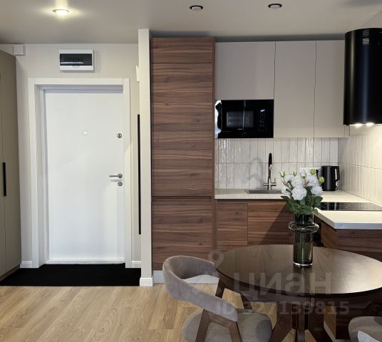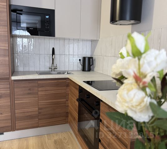 Просторная квартира общей площадью 50,5 кв. м. расположена на 11 этаже нового 33-этажного дома, сданном в 2024 году. Жилая площадь составляет 22,6 кв. м, кухня-студия впечатляющего размера — 16 кв. м.