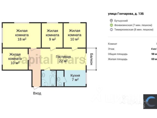 От года, комм. платежи включены (счётчики включены), без комиссии, залог 1 800 000 ₽