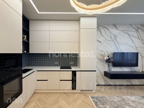 Дизайнерская квартира с красивыми интерьерами в известном ЖК "Триколор" с замечательным видом на ВДНХ и парк. Состоит из изолированной студии 35м со своей кухней и санузлом и секции из 3-х спален с двумя санузлами, кухней и залом. Дизайнерские шкафы-купе и две гардеробные комнаты: 15м при входе и 3м в мастер-спальне.