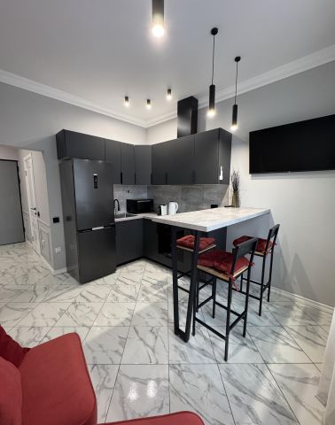 ТЕХНИКА: индукционная плита на 2 конфорки, холодильник с морозильной камерой, микроволновка, эл.чайник, эл.кофеварка, фильтр для питьевой воды, телевизор с Android TV, стирально-сушильная машина, водонагреватель, пылесос, утюг, умные выключатели (можно подключить к телефону или колонке).