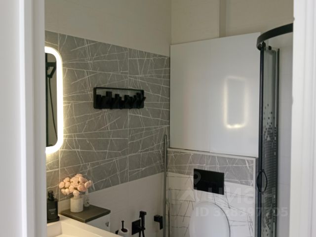 Санузел совмещённый, инсталляция, угловая ванная, установлен водонагреватель для бесшовного проживания на время планового отключения горячей воды.