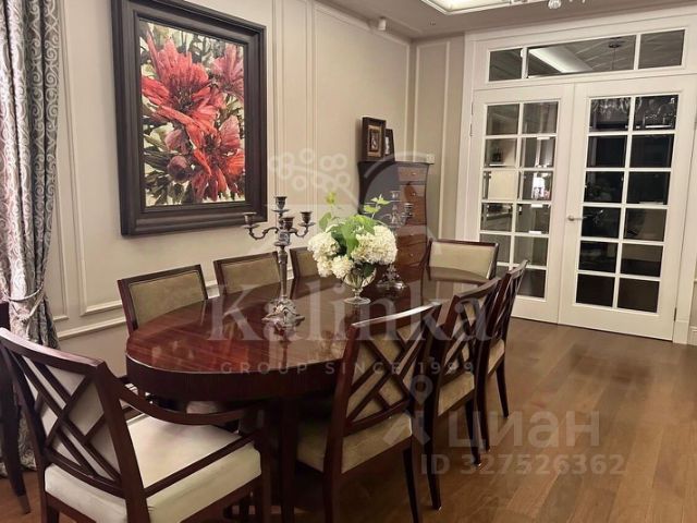 ID 575582 Сдается в аренду таунхаус 450 кв.м. на участке 6 соток в КП Довиль. 10 км. от МКАД по Можайскому или Минскому шоссе. Есть выезд на скоростную платную дорогу. Таунхаус - торцевой (имеет только одну смежную стену). Планировка: Цоколь: спальня, с/у, кладовая, гардеробная, тренажерная, тех.помещения; 1 этаж: (все окна от пола до потолка) холл, гостиная с камином, зимний сад, кухня-столовая, с/у (итальянская мебель, встроенная техника: NEFF; Liebher, винный шкаф, два холодильника, холодильная камера, измельчитель кухонный Insinkerator, фильтр Atoll); 2 этаж: спальня , кабинет, гардеробная, с/у, постирочная, выход на террасу; 3 этаж: 2 спальни с с/у. Коммуникации центральные. На участке цветущий сад с декоративными и плодовыми растениями. Зона барбекю, столовая зона под тентом. Номер объекта: #1/575582/14501 Сдаю таунхаус Можайское шоссе на длительный срок.