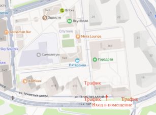 помещение расположено на 1-м этаже, трафик в среднем в день 1400 человек.