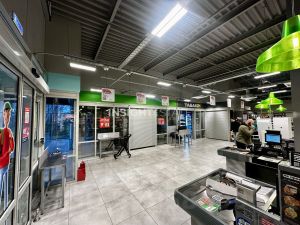 Супермаркет расположен на трассе рядом с коттеджными посёлками "Уайт Па...