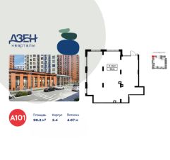 Сдается помещение площадью 96.20. на 1-м этаже ЖК "Дзен-кварталы".