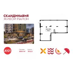 Сдается помещение площадью 106.40. на 1-м этаже ЖК "Скандинавия". Трафик 874 человек в день.