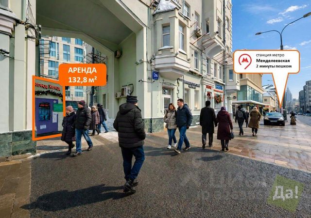 Компания-собственник коммерческой недвижимости "АрендаДа!" сдает в аренду торговое помещение 132,8 кв.м. в 2 минутах пешком от м.Менделеевская/Новослободская! (НДС включен).Эксплуатация включена. КУ по счетам.ТОПОВАЯ ЛОКАЦИЯ:2 минуты пешком от станций метро Менде...