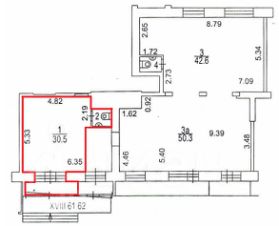 Площадь 48,5 кв.м. Может потребоваться ремонт обсуждаются арендные каникулы