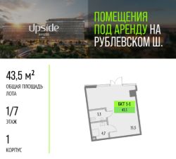 Предлагается в аренду помещение площадью 43,5 кв.м. под аптеку. Помещение находится на первом этаже нового бизнес-центра класса "А" Upside Кунцево, на престижном западе Москвы.Upside Кунцево состоит из двух корпусов 7 и 9 этажей, гармонично вписанных в природный...