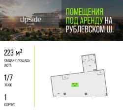 Предлагается в аренду помещение свободного назначения площадью 223 кв.м. Помещение расположено на первом этаже нового бизнес-центра класса "А" Upside Кунцево, на престижном западе Москвы.Upside Кунцево состоит из двух корпусов 7 и 9 этажей, гармонично вписанных в...
