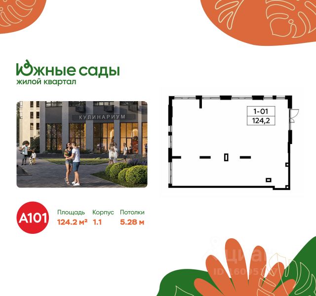 Сдается помещение площадью 124.20. на 1-м этаже ЖК "Южные Сады".