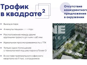 Сдается в аренду помещение с технологией под ресторан площадью 330,5 кв. м. В составе премиального офисного квартала STONE Towers площадью 106 тыс. кв. м на 11 тыс. сотрудников. Ресторан расположен на 1-м этаже бизнес-центра Tower D, отлично просматривается с ТТК...