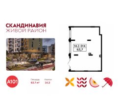 Лот 952919 Предложение от Собственника! Сдаётся в аренду помещение свободного назначения площадью 65.6 м2 в ЖК "Скандинавия" всего в 3 мин. пешком и прямой видимости от новой станции метро "Потапово".