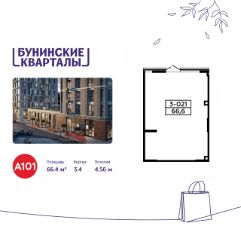 Сдается помещение площадью 66.40. на 1-м этаже ЖК "Бунинские кварталы".