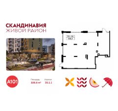 Сдается помещение площадью 106.60. на 1-м этаже ЖК "Скандинавия". Трафик 874 человек в день.