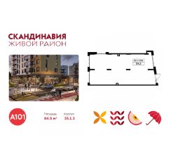 Сдается помещение площадью 84.50. на 1-м этаже ЖК "Скандинавия". Трафик 874 человек в день.