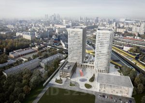 Бизнес квартал представляет собой 2 башни по 24 этажа, объединённых стилоб...