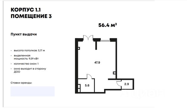 Помещение 66,5 м2, располагается на 1 этаже, открытая планировка, отдельный вход с фасада, высота потолка 4 м, витринные окна по фасад...
