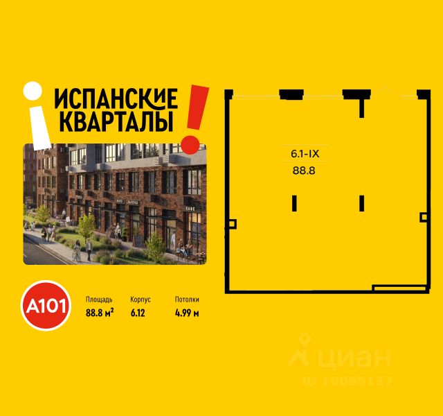 Сдается помещение площадью 88.80. на 1-м этаже ЖК "Испанские кварталы". Трафик 807 человек в день.