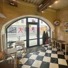 В помещении сделан дизайнерский ремонт. По всему периметру - огромные витрины.