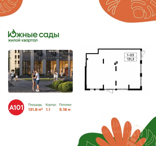 Сдается помещение площадью 131.80. на 1-м этаже ЖК "Южные Сады".