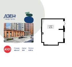 Сдается помещение площадью 42.40. на 1-м этаже ЖК "Дзен-кварталы".