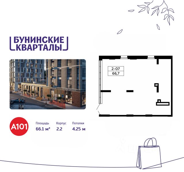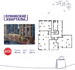 Сдается помещение площадью 66.10. на 1-м этаже ЖК "Бунинские кварталы".