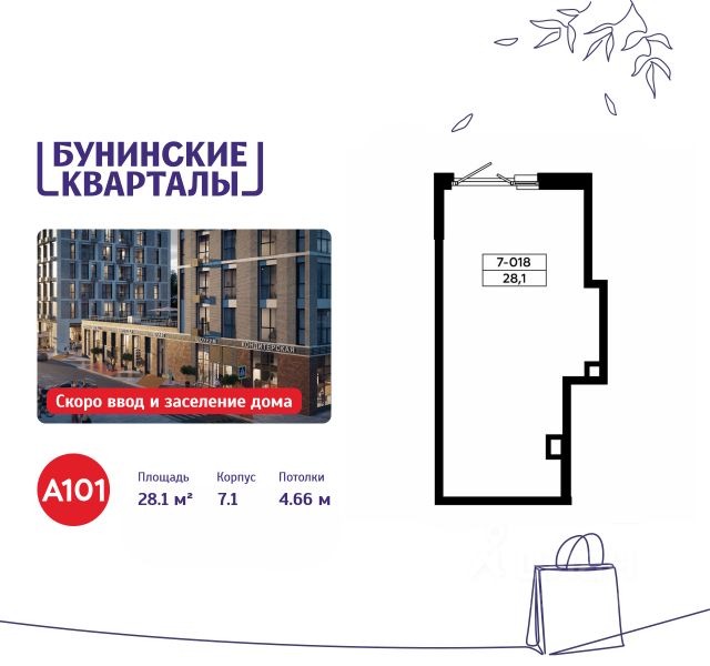 Сдается помещение площадью 28.10. на 1-м этаже ЖК "Бунинские кварталы".