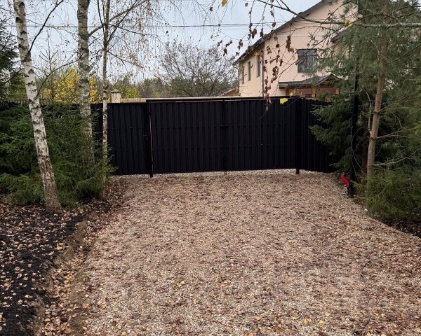 Парковка для машины на территории без навеса, глухой забор по периметру, территория и дороги хорошо освещены, есть участок дороги к дому 250 м не в удовлетворительном состоянии.