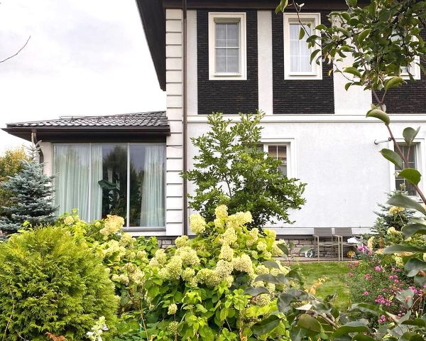 Все коммуникации в доме, центральные и надёжные. Мебель, предметы интерьера, сантехника и бытовая - европейские и свежие. Высокие потолки и обилие панорамного остекления - создают простор и атмосферу. Терраса с видом на придомовой участок 12 соток - зелёный газон, туи и плодовые деревья. Место под BBQ у дома, камин для уюта зимой в доме. Крытая парковка для 2 Ваших авто + до 3 для гостей. Проходы и подъезды к дому вымощены камнем. Придомовая территория, как и улицы в посёлке ухожены и освещены. За чистотой следят местные пчёлки-уборщики от УК и техника зимой и летом.