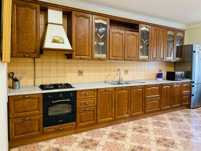 Кухня со встроенной техникой (2 холодильника Liebher, газовая плита Smeg, духовой шкаф Smeg, вытяжка). Полностью смонтирована система освещения- люстры, бра, точечная и светодиодная.