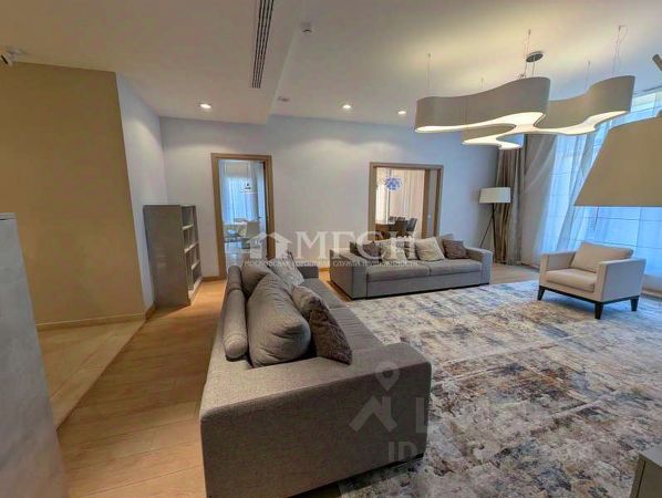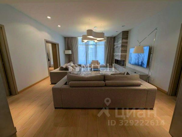 Мебель, оборудование: кухонный гарнитур с островом, эмалированные фасады из МДФ, столешница из искусственного камня. Вся необходимая встроенная техника: газовая варочная панель, духовой шкаф, двухдверный холодильник Side-by-Side, посудомоечная машина, стиральная машина, в гостиной большой современный телевизор. В столовой обеденная группа на 6 персон с мягкими креслами, в гостиной П-образный раскладной диван с обивкой из велюра. Возможно будет дополнить мебель под арендатора. В гостиной панорамное остекление закрыто тюлем. Установлена скрытая светодиодная подсветка, точечные споты, движущиеся споты на рейлингах, люстры..