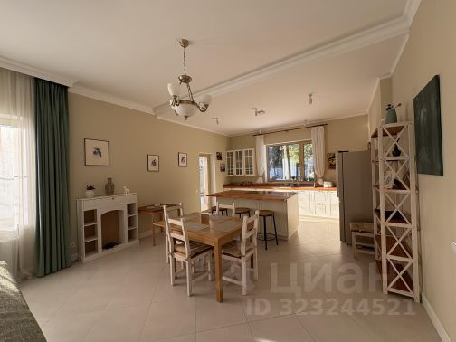 Мебель, оборудование: Дом полностью меблирован качественной современной функциональной мебелью: в гостиной мягкий гарнитур с тумбой для ТВ и комодом, столовая группа из массива на 6 персон. В трех спальнях большие двуспальные кровати, в т.ч. размером King Size, шкафные группы, комоды, гардеробные оборудованы системой хранения, в двух спальнях раскладные диваны, оборудовано рабочее место. Кухонный гарнитур с островом с полубарным столом и стульями, фасадами из МДФ белого цвета, столешницей из массива лиственницы и встроенной техникой: электр. индукционная варочная панель, посудомоечная машина (60см), СВЧ-печь с конвекцией Kuppersberg, тостер, чайник. Холодильник Side-by-side Nordfrost. Обеденный стол раскладной на 4-8 персон и другая кухонная мебель (столик, стеллаж, буфет). Стиральная машина Hotpoint с функцией сушки (на 8+5кг), пылесос, в гостиной телевизор LG 55 дюймов с функцией Smart TV, а также телевизоры в двух спальнях на первом и втор