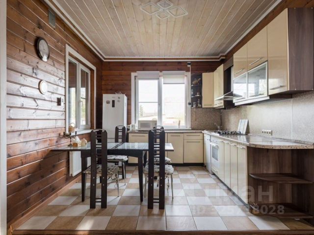 Описание внутренней отделки: стиль ретро (аутентичный русский частный дом). Выполнена отделка из натуральных материалов с элементами стиля прованс. Стены и потолок в основном отделаны вагонкой или блокхаусом. В кухне-столовой стены, потолок и пол - деревянная окрашенная доска. Гостиная: пол и потолок - окрашенная деревянная доска, стены комбинированные: дерево + обои. Санузлы полностью отделаны испанской плиткой, полы - с подогревом. Фартук кухни- стильная испанская плитка маленького формата с декором. В кухне-столовой есть настоящая русская функционирующая печь. Деревянная лестница белого цвета (ступени - естественного цвета, покрыты лаком) с резными балясинами..