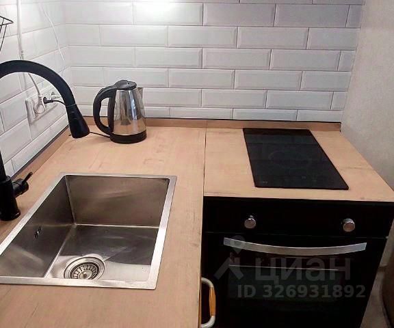 В кухной зоне есть мебель, варочная программируемая электроплита, электрочайник, встроенная вытяжка и СВЧ-печь.