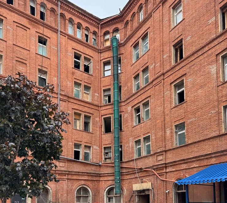 На то время это был один из самых современных и передовых жилых комплексов Москвы: огромные квартиры, высокие потолки; в закрытом дворе — сцена с каменной аркой, где артисты развлекали обеспеченных жильцов. Но, как мы понимаем, роскошная жизнь здесь закончилась, не успев толком начаться, уже в 1917 году.