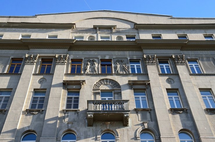 Необычная окраска одного из корпусов — дань истории дома. Первые четыре этажа построили в 1926 году — их сделали тёмно-серыми, а два верхних этажа, надстроенных в 1952 году, решили сделать светло-серыми. Вот такая благодаря жильцам история дома, рассказанная через его окраску.