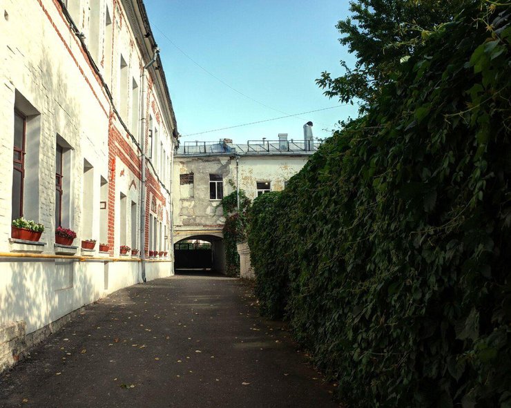 Корпус, который стоит в глубине комплекса, — тот самый, старомосковский, дом с галерейками. Вход в квартиры этого двухэтажного строения прямо с улицы или по уличной лестнице.