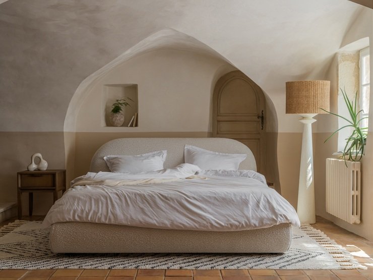 Низкое изголовье незаменимо в интерьерах, где важна простота: в скандинавском минимализме, японском стиле или винтажных спальнях. Оно также практично для детских комнат, где масштаб мебели должен соответствовать росту ребёнка, и для бюджетных решений, включая съёмное жилье.