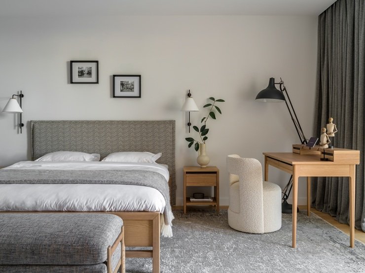 Минимализм снижает стресс через порядок. Когда вокруг нет визуального хаоса, мозг тратит меньше ресурсов на фильтрацию лишнего: свободное пространство коррелирует с более низким уровнем кортизола.
