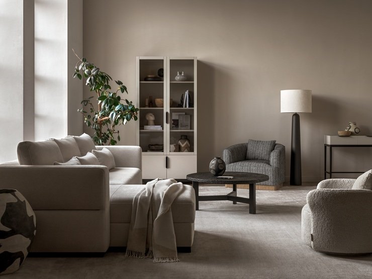 Особое внимание стоит уделить материалам обивки и формам. Плавные линии — изогнутые спинки, скруглённые углы диванов и кресел — делают атмосферу более расслабленной и приветливой.