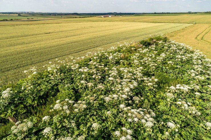 Узнать борщевик несложно. Заросли этого высокого сорного растения оккупировали обочины дорог, поля и опушки леса. Его соцветие напоминает по форме раскрытый зонт. Приближаться к нему не стоит, потому что он вызывает ожоги.