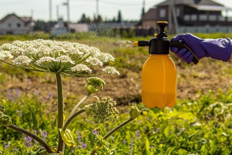 Большие площади обычно обрабатывают химическими агентами или используют специальную сельскохозяйственную технику. На дачных участках чаще удаляют борщевик вручную.