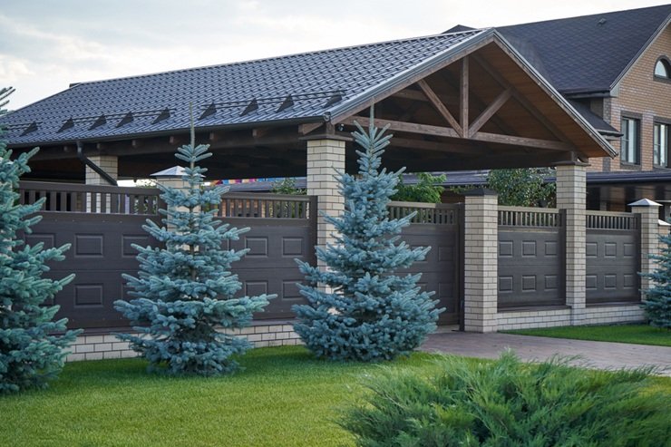 Материал и конструкция также влияют на выбор того, что можно посадить вдоль забора. Кованые ограждения хорошо сочетаются с низкорослыми кустарниками, а на сетчатых можно организовать плотные изгороди. Профнастил сильнее нагревается на солнце, поэтому рядом с ним лучше высаживать устойчивые к жаре деревья.