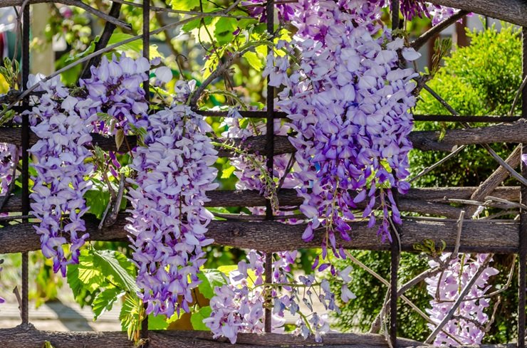 Вьющиеся растения — хмель, глициния, японский плющ, девичий виноград, жимолость.