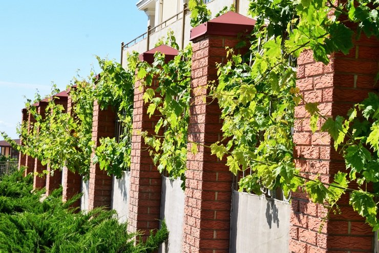 Чтобы определить, что посадить, следует понимать, как именно лиана цепляется за поверхность. Например, плющ лучше держится на каменных и кирпичных стенах с помощью воздушных корней, а девичий виноград цепляется за любые поверхности усиками с присосками.