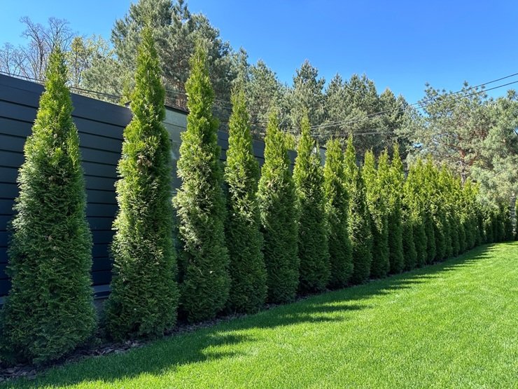 → тую для изгороди обычно ставят с шагом 0,6–0,8 м;